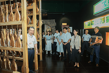 8月22日,金華市委書(shū)記朱重烈專(zhuān)程赴金字火腿公司調(diào)研金華火腿產(chǎn)業(yè)振興工作。朱書(shū)記在公司領(lǐng)導(dǎo)周?chē)?guó)華、馬曉鐘、吳月肖陪同下,走進(jìn)火腿文化展示館和產(chǎn)品展廳。